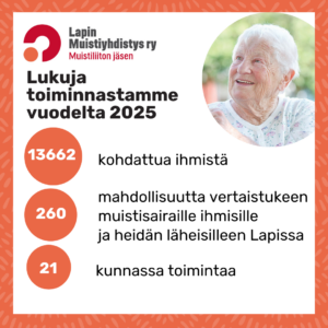 Lapin Muistiyhdistyksen Lapin Muisti Kuntoon on pyrkinyt maakunnan toimijoiden kanssa luomaan elintapaohjauksen toimintamallia, jolla voisimme tavoittaa riskiryhmiin kuuluvia lappilaisia. He voivat olla esimerkiksi henkilöitä, jotka ovat käyneet muistitesteissä, mutta eivät ole saaneet diagnoosia tai muistisairauteen sairastuneet lähi-ihmisiä.